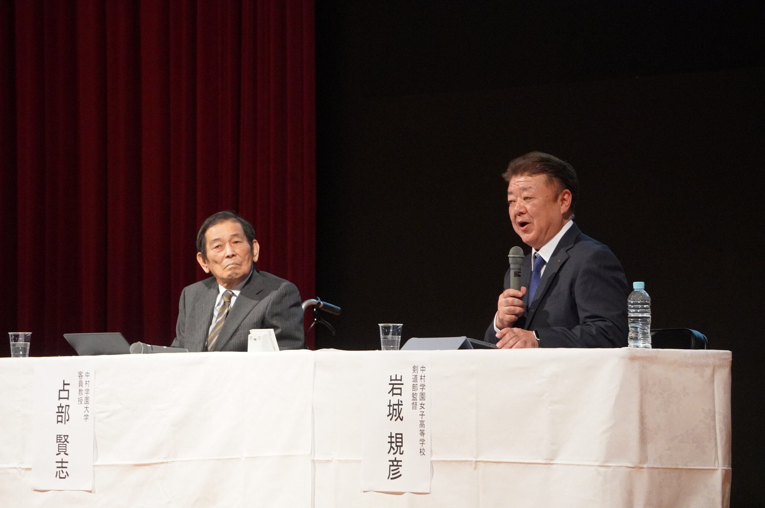 本フォーラムでは、中村学園大学客員教授の占部 賢志先生と中村学園女子高等学校剣道部顧問の岩城 規彦先生をお迎えし、「人間教育~不易と流行~」と題して、人間教育の在り方や、心を鍛える指導について語っていただきました。対談の進行は中村学園大学短期大学部学部長の岩田 京子先生が務めました。