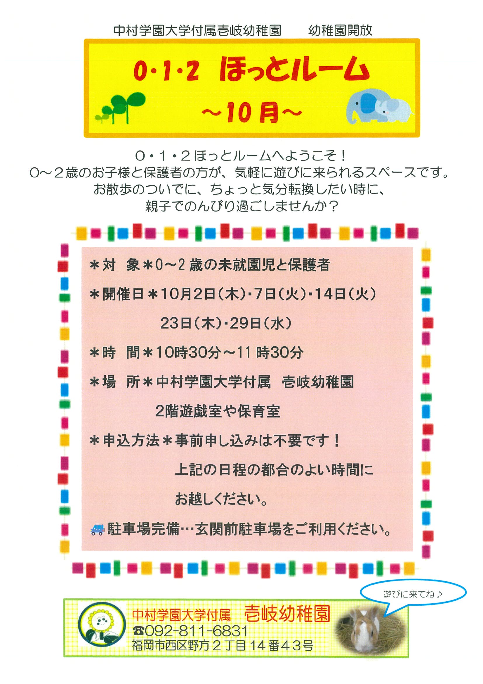 0~2歳のお子様とおうちの方、「ほっと」遊びに来ませんか?