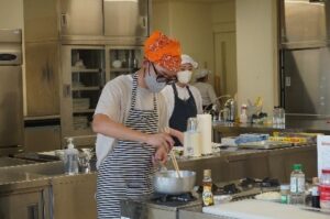 書類審査では、応募作品の中から10作品が選ばれ、第1回審査・最終審査へと進みました。日々の食生活にも取り入れたくなるような、栄養バランスに優れたレシピが多数寄せられました。審査当日は、応募学生が調理室でスープを仕上げ、食育推進委員長である栄養科学科の近江 雅代教授をはじめ、食育推進委員による試食・審査が行われました。いずれのレシピも個性と工夫に富み、審査員の先生方は味やアイデアの多様性に感心しながら、慎重に評価を進められました。