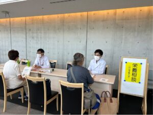 また、当日は、同会場前において、各大学の特色を活かした「健康相談コーナー」も実施され、本学からは3名の管理栄養士による栄養相談を実施しました。