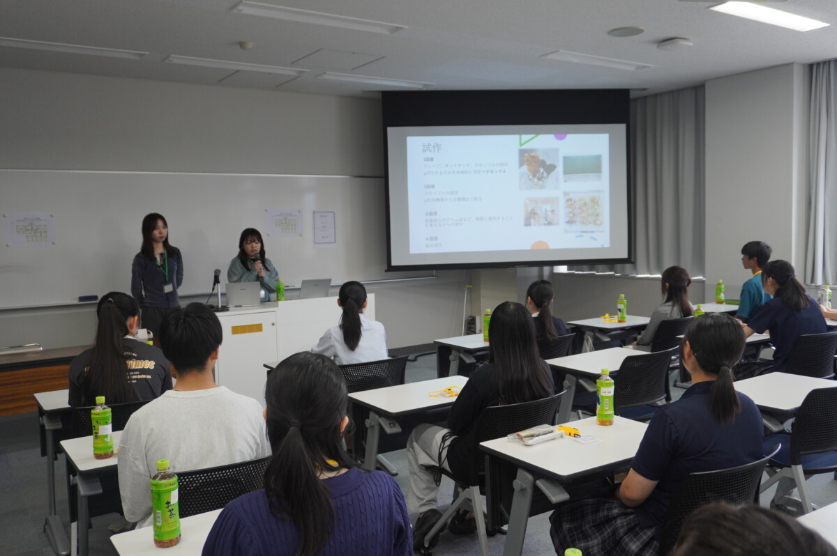 プレゼンテーションでは、各グループから特色のある商品が提案されました。高校生は、他のグループの発表にも興味深く耳を傾けていました。