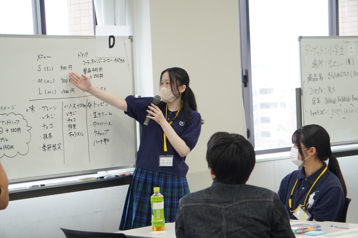 ビジネス・サービス・商品開発・商品企画などに興味のある高校生が参加し、キャリア開発学科・中川ゼミの学生たちとグループワークを行いました。
