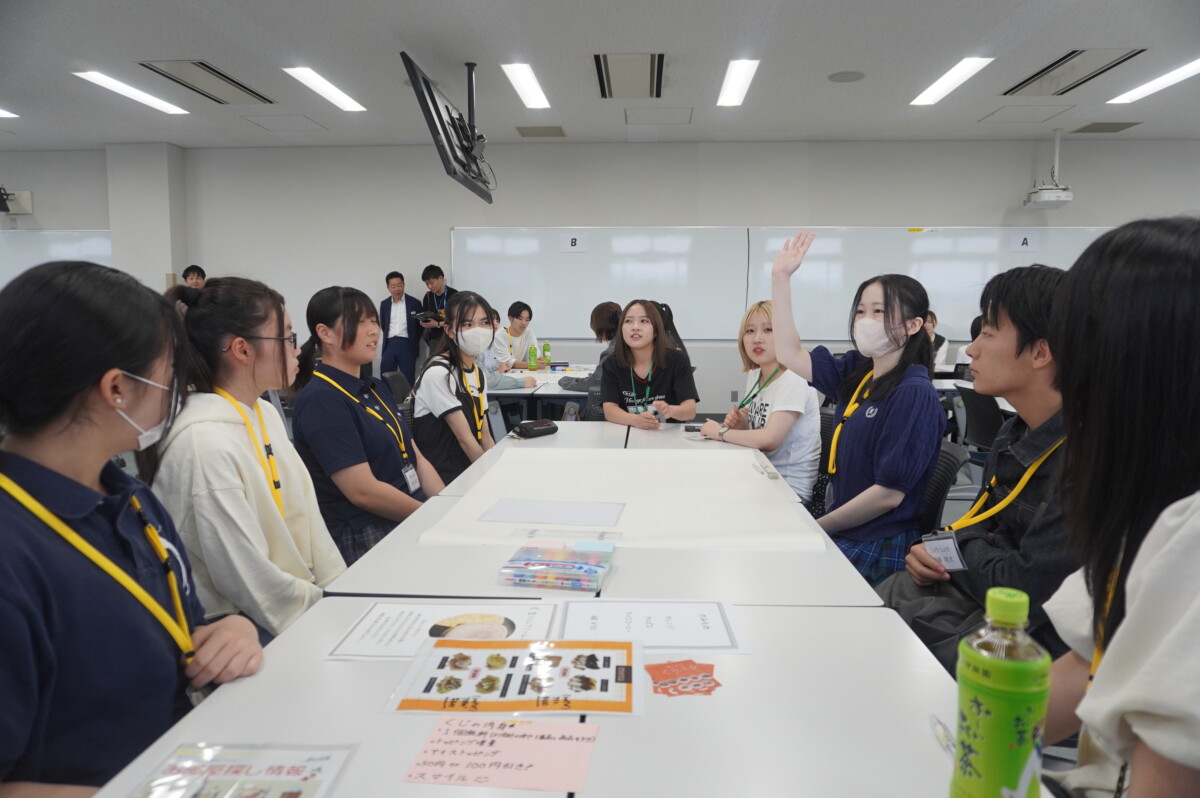 今回のテーマは「大学生と一緒に考える!1日限定カフェをプロデュースしよう!」で、講師はフード・マネジメント学科の眞次一満准教授です。眞次ゼミに所属する4年生10名が、グループワークのファシリテーターを務めました。