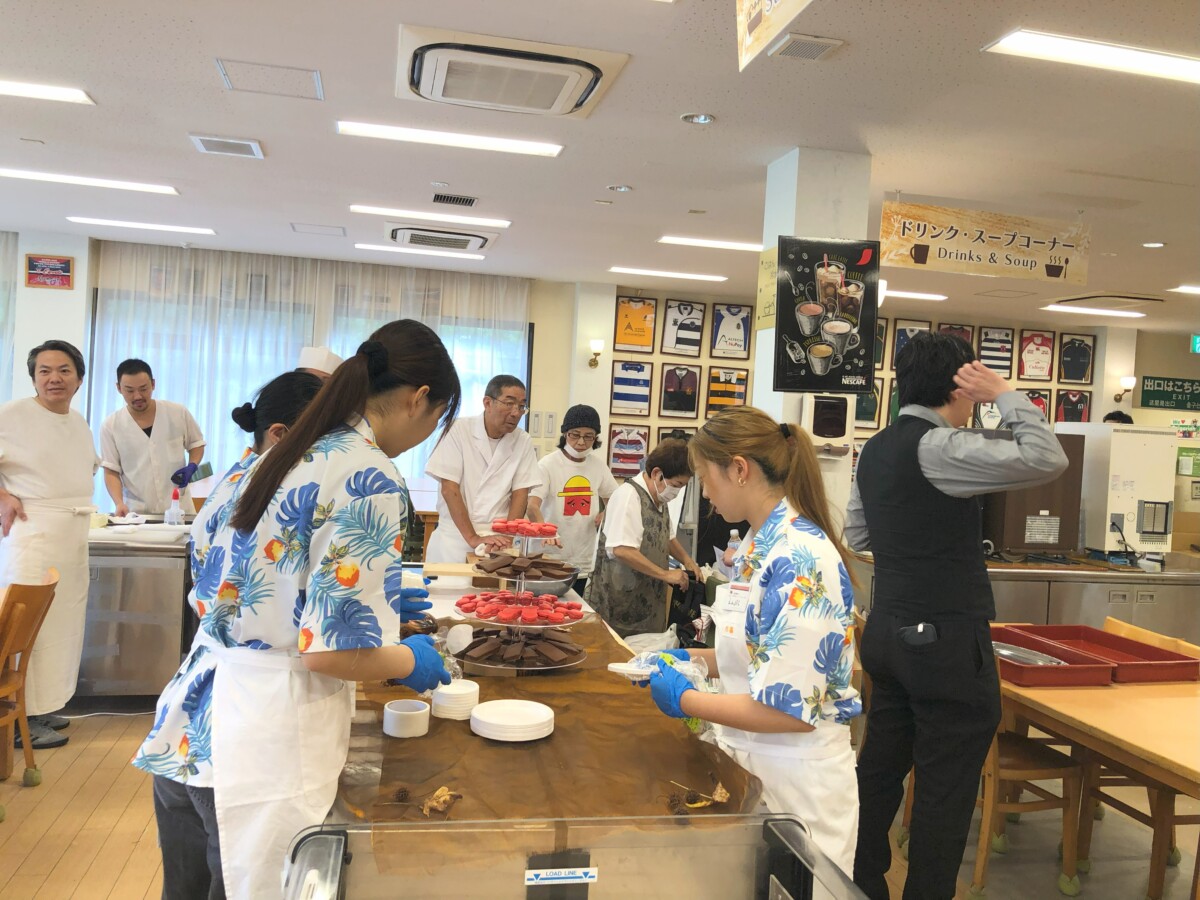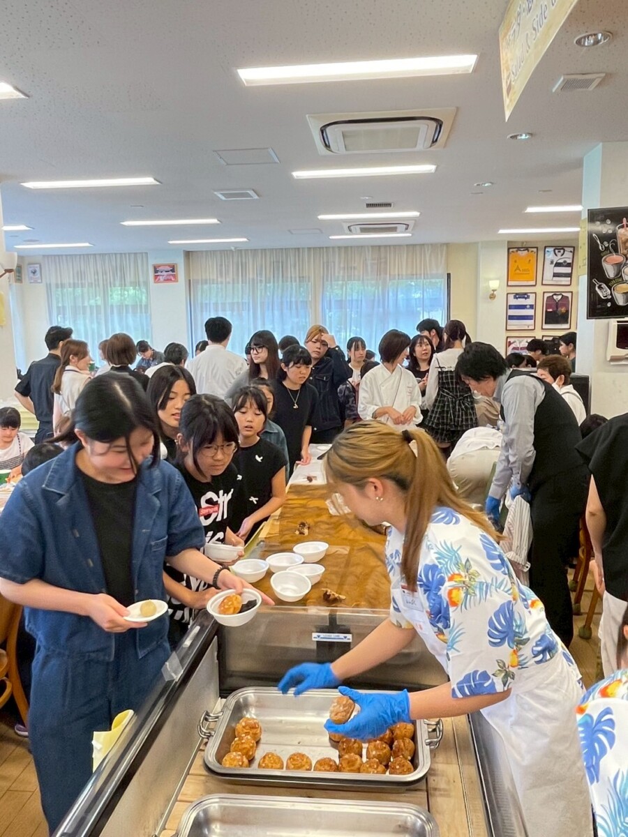 参加してくれた子どもたちが喜んでくれたことが、学生にとっても何よりも嬉しいと感じられた1日でした。また、並んで作業していた隣の人が、福岡で有名な食品企業や憧れの洋菓子店の社長だったりしたことに後から驚く学生もいました。普段は見ることのできない福岡県優秀技能賞表彰を受けた和菓子職人の技術を間近で見ることができたり、通常では体験できない有名店洋菓子のデコレーションを任されたり、将来は食分野での仕事を目指す学生にとって貴重な時間を過ごすことができました。