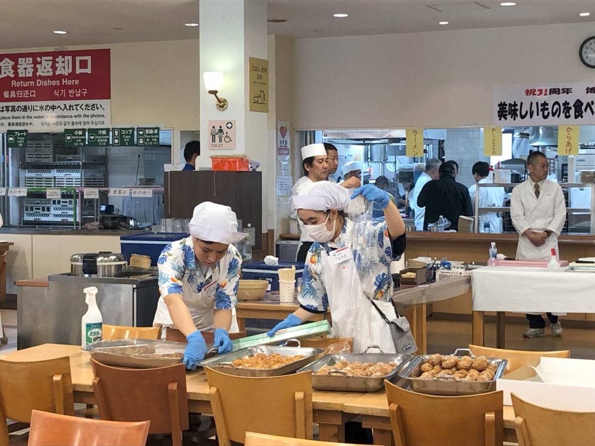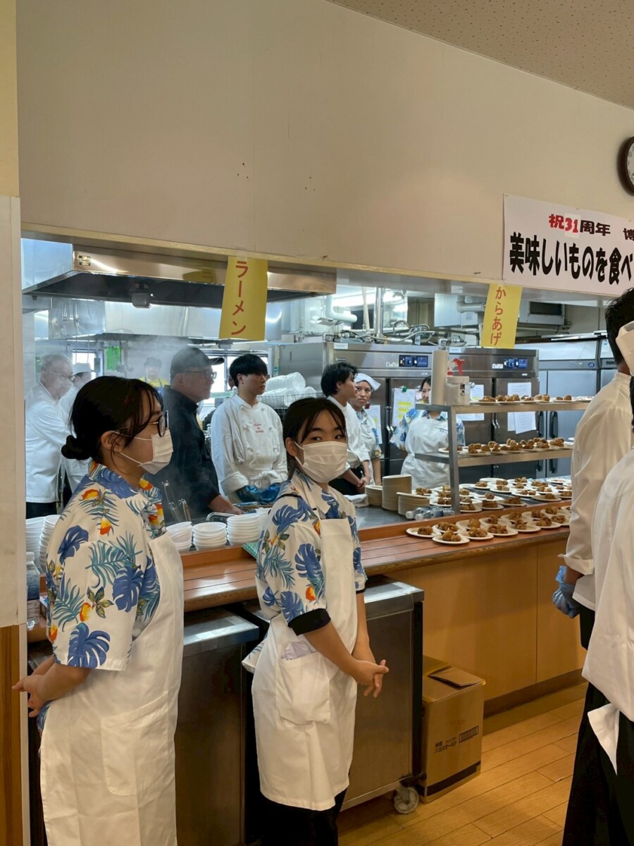 9月28日(日)、宗像市のグローバルアリーナにおいて、第31回「美味しいものを食べて元気を出そう!」博多食文化の会ボランティア活動が行われ、フード・マネジメント学科の水元ゼミ学生と2、3年生有志の計6名もここに参加しました。